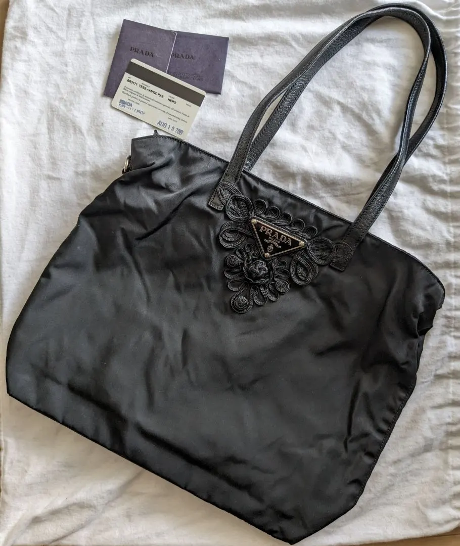 【正規品】PRADA プラダ トートバッグ 編み込み 刺繍 ブラック