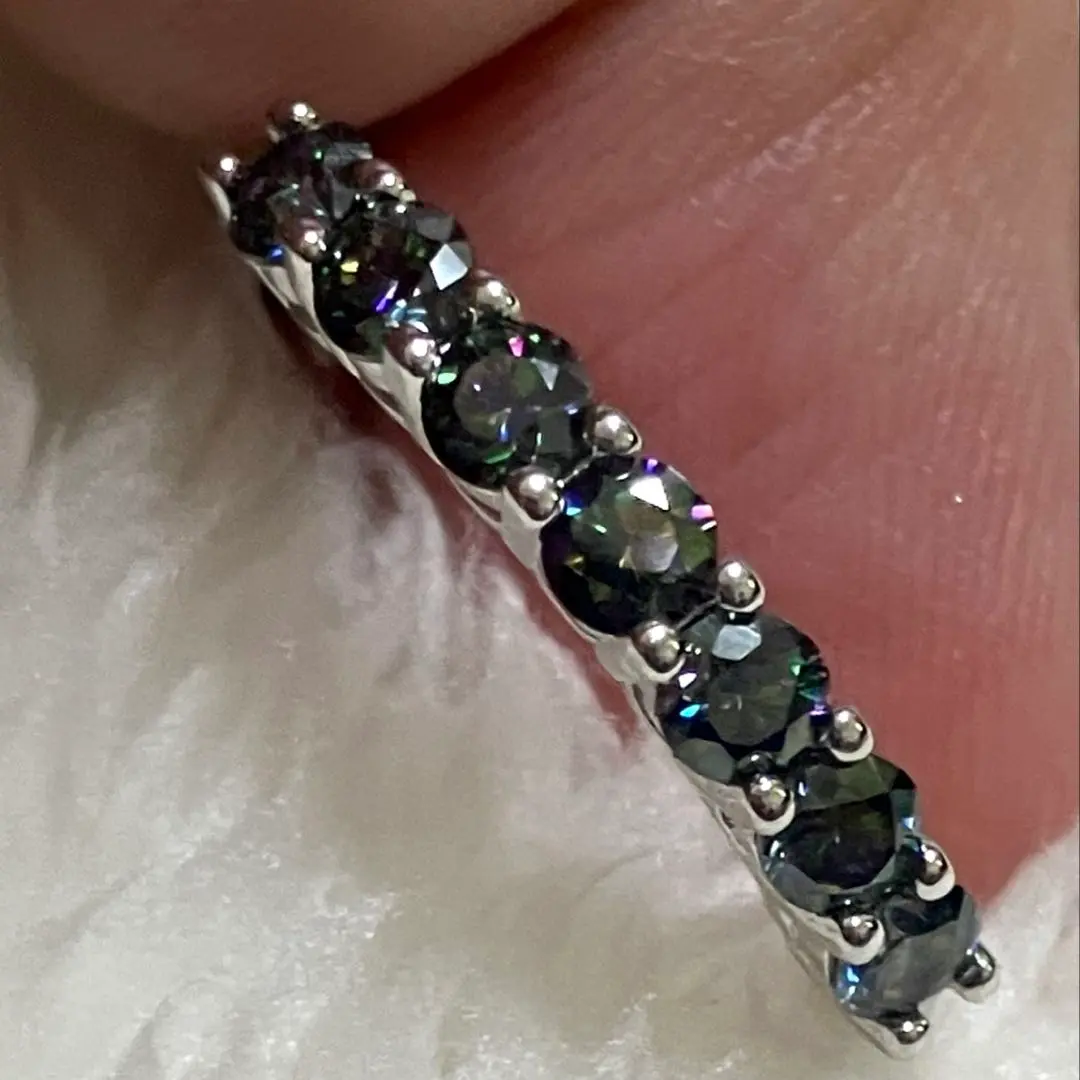 ディープグリーン モアサナイト リング 指輪 ハーフ エタニティ 濃い 緑