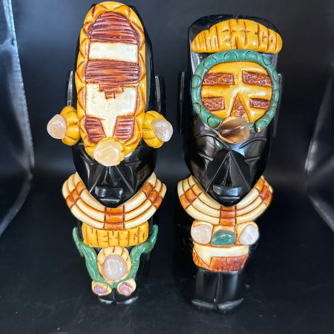 【美品】メキシコ 黒曜石 天然石 装飾 彫刻 マヤ アステカ 古代文明 オブジェ