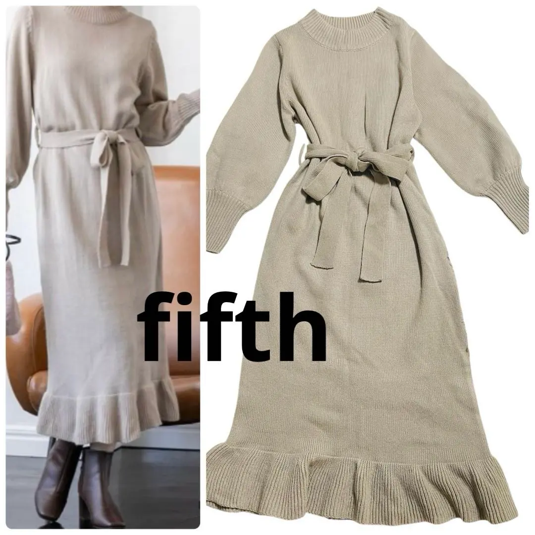 【fifth】 フィフス ウエストリボンフリルヘム ニットワンピース グレージュ