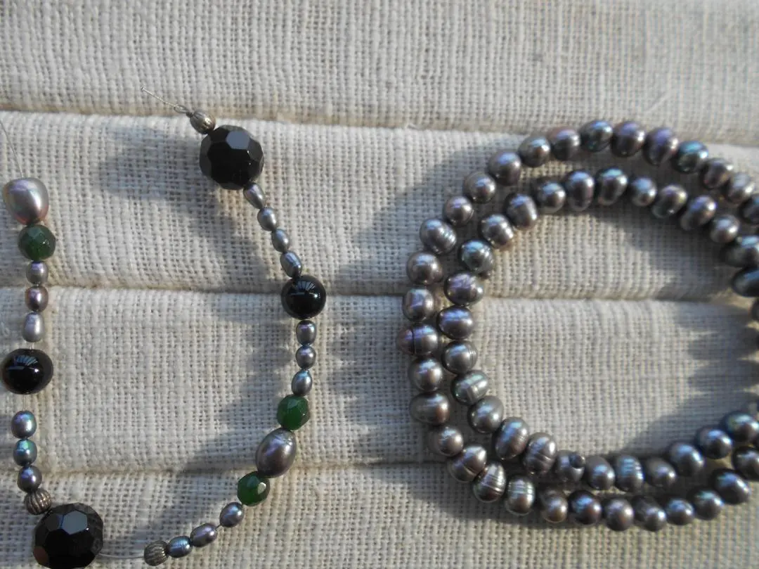 淡水真珠1連パーツ ブラックグレー2本セット 小粒タイプ