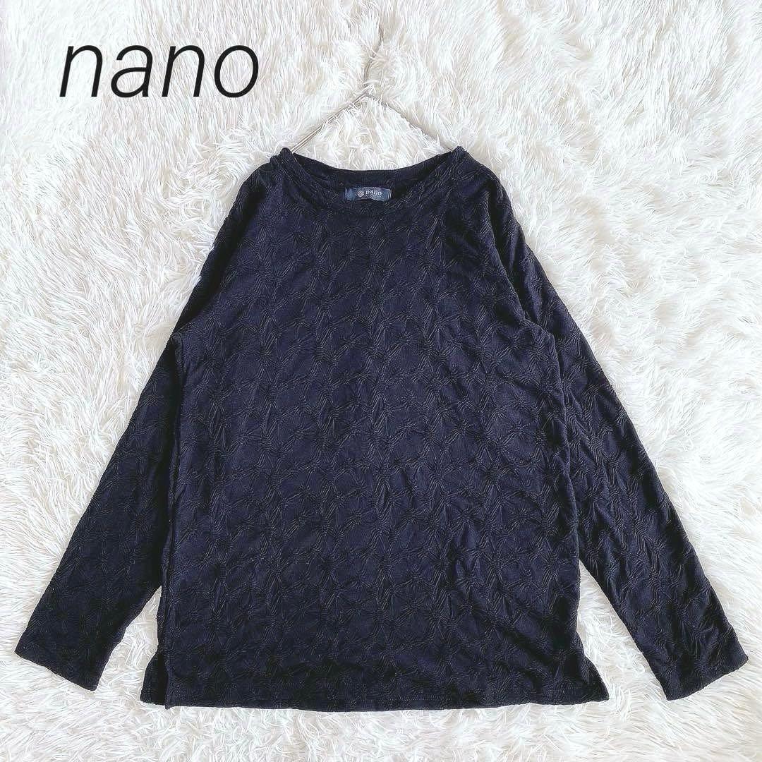美品◆ nano ナノユニバース 長袖カットソー【F】ブラック シンプル 黒