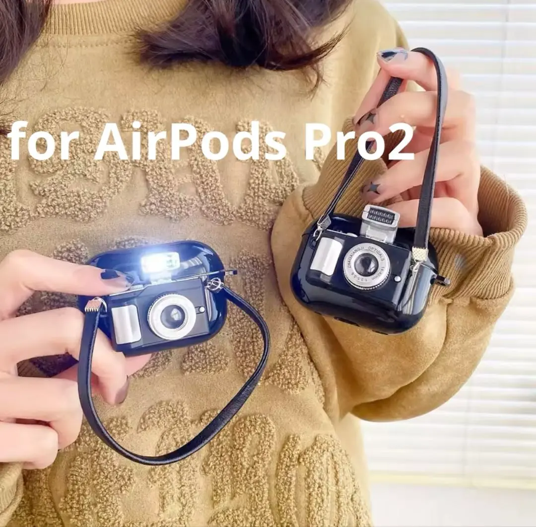 レトロカメラ型イヤホンケース ブラック AirPodsPro2