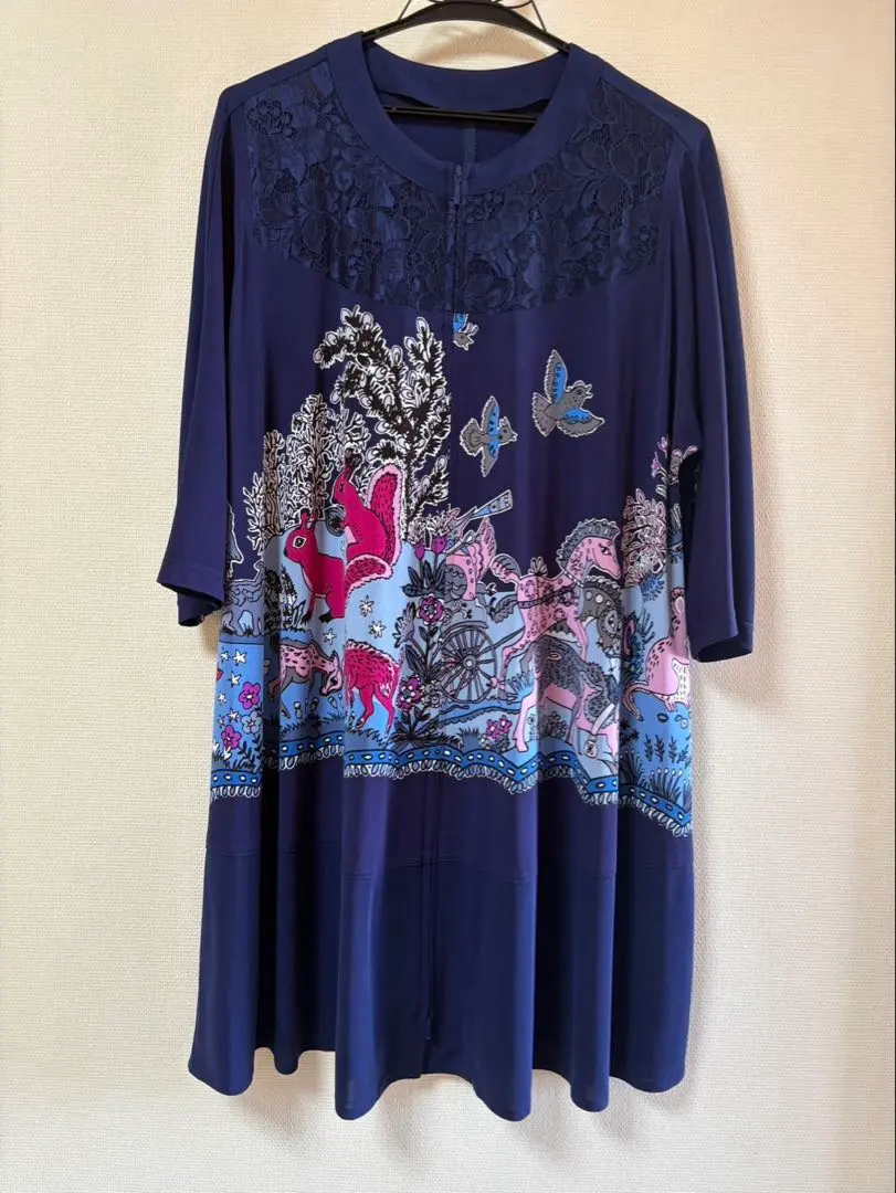 『新品未使用』⭐️トクコプルミエヴォル⭐️濃い紫地に植物や動物が描かれたチュニック❣️