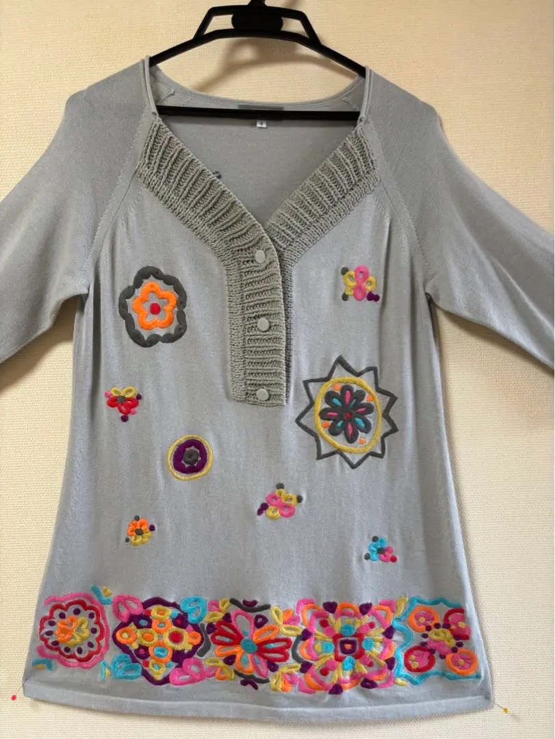 『美品』⭐️トクコプルミエヴォル⭐️豪華お花の刺繍チュニックライトグレー❣️