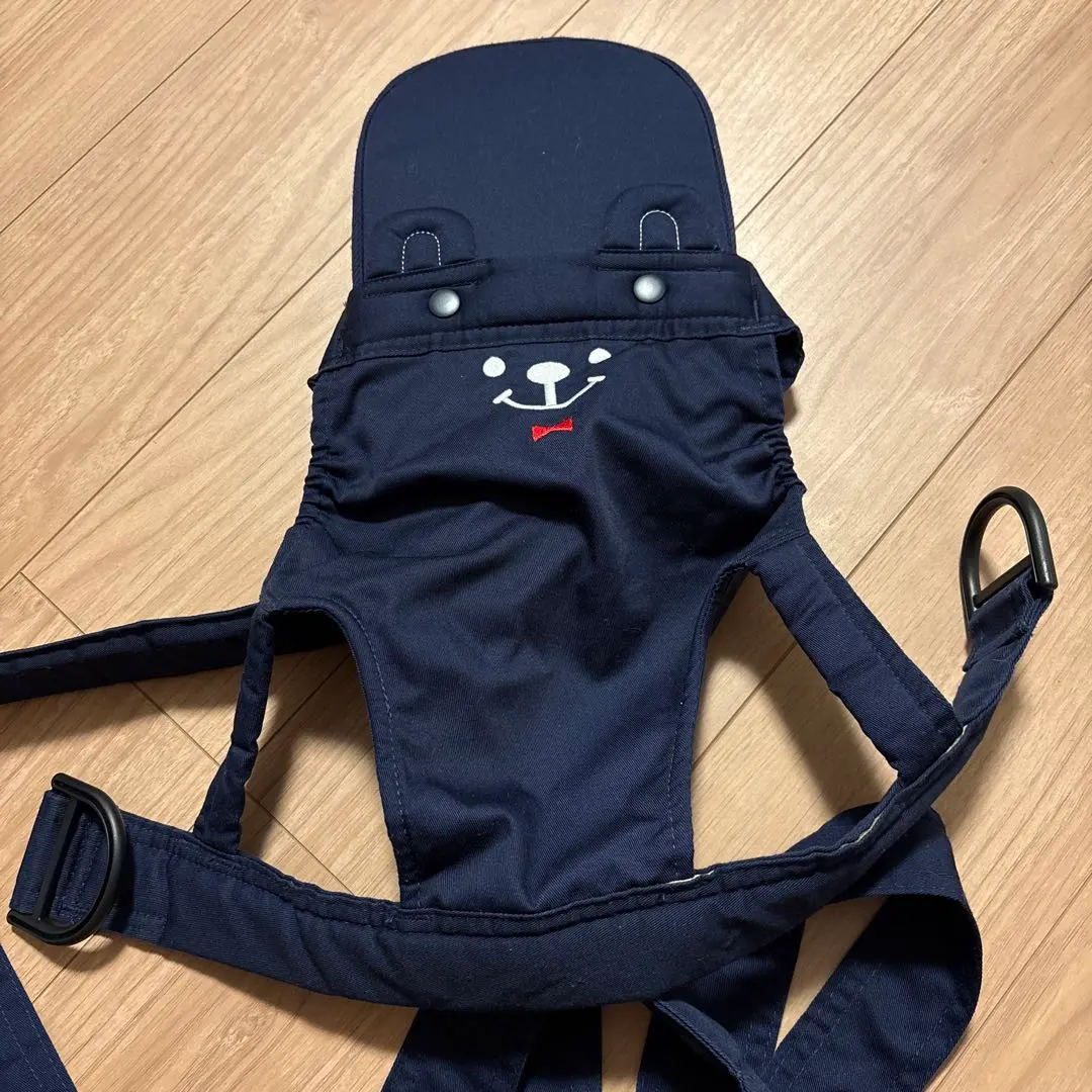 ネイビー 抱っこ、おんぶ紐 クマの顔刺繍