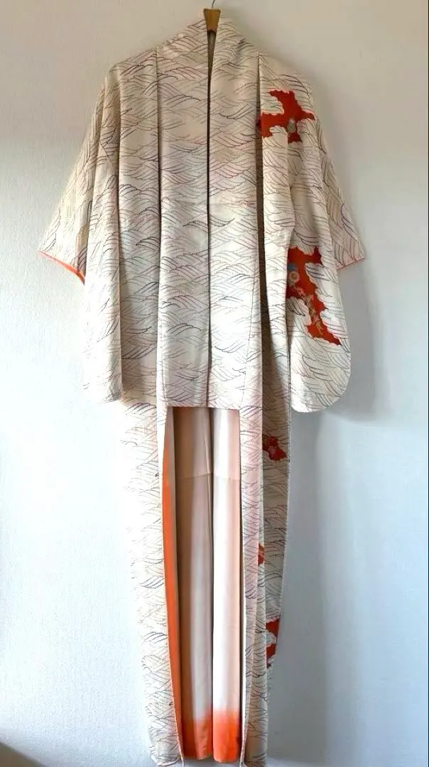 正絹 和装 着物コート 道行コート 羽織 はおり 赤 少し光沢感