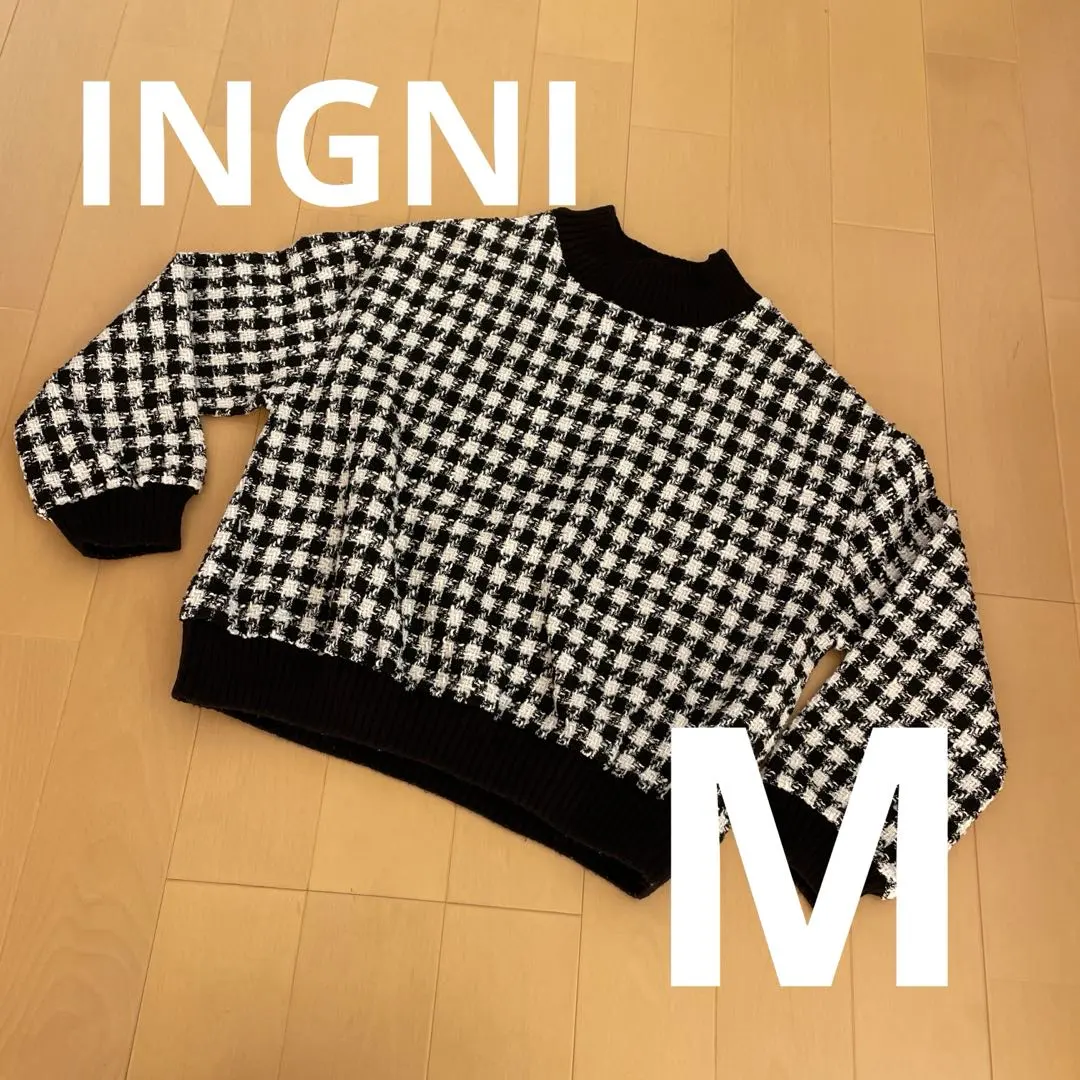 新品未使用‼︎イング ショート丈 ハイネック千鳥柄ニット M