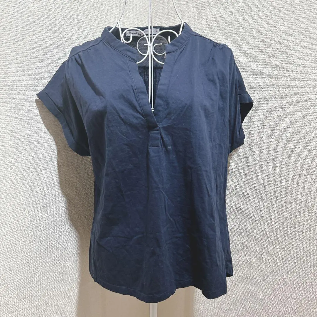 【Corte Largo】 コットン100% 半袖プルオーバーブラウス 紺 M
