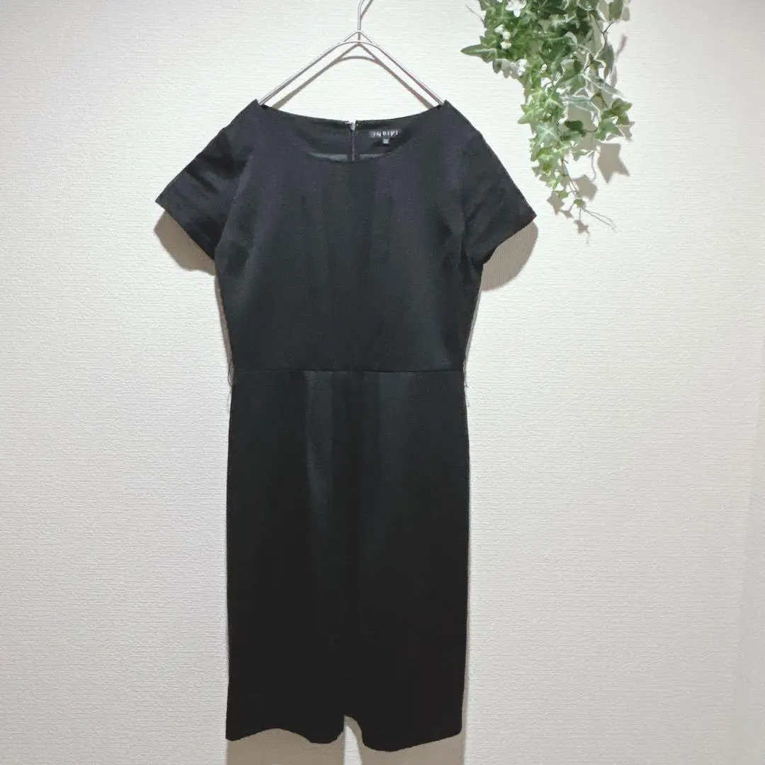 【インディヴィ】ブラックミニワンピース 半袖 5号 フォーマル 日本製