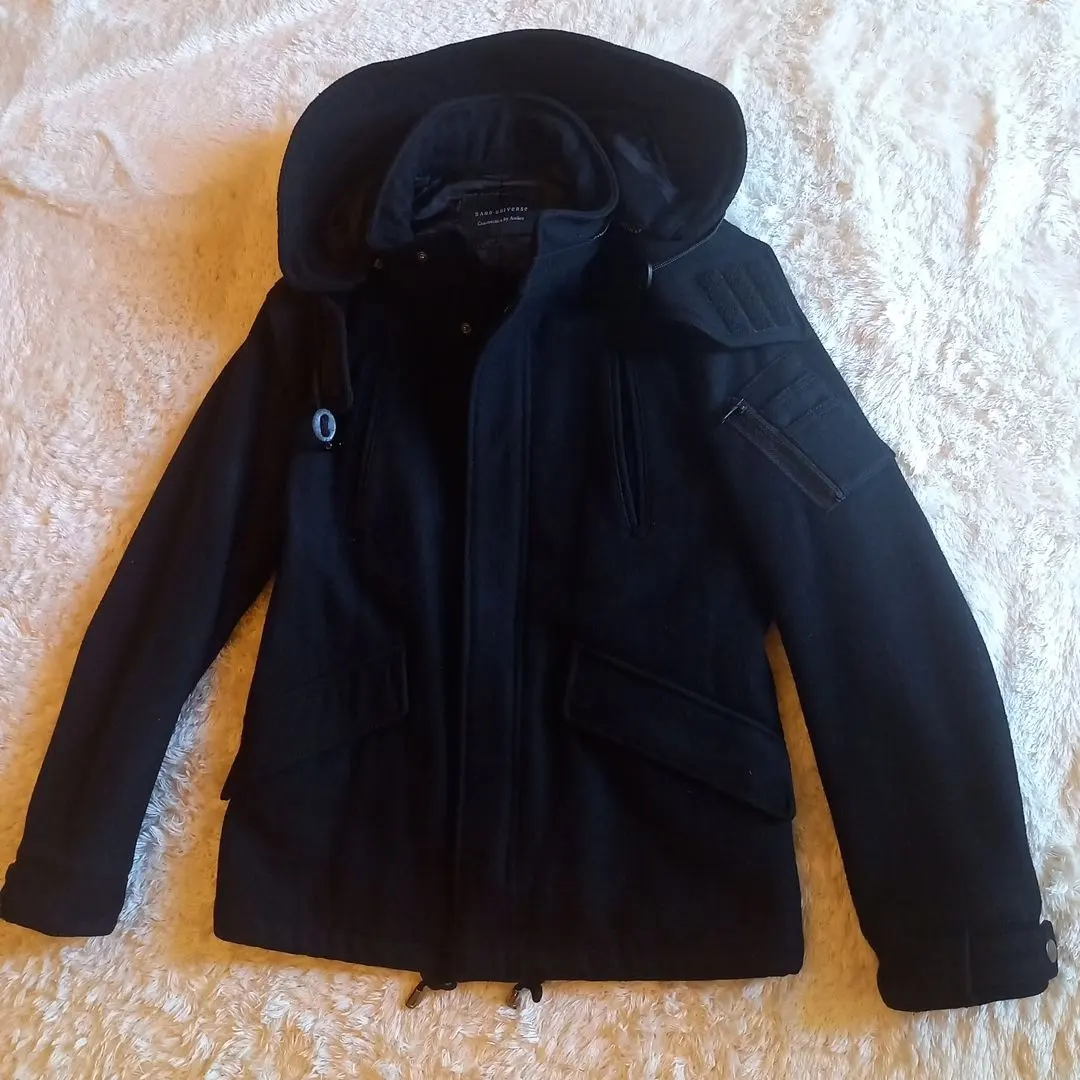ナノユニバース 取り外しビッグフード付3WAYウール混モッズコート ブラック M