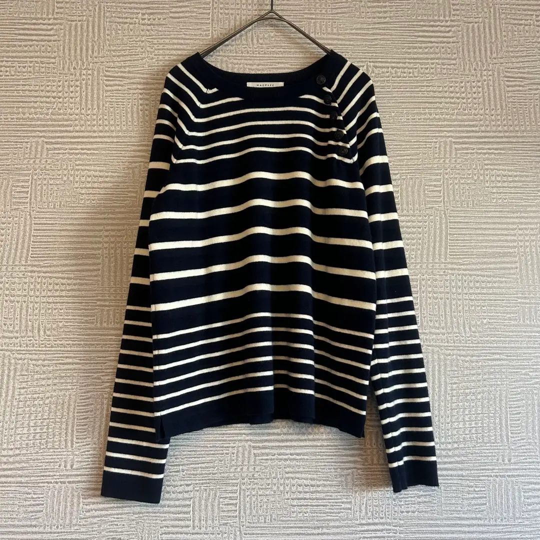 【美品】MACPHEE☆ウールボーダークルーネックプルオーバー ネイビー