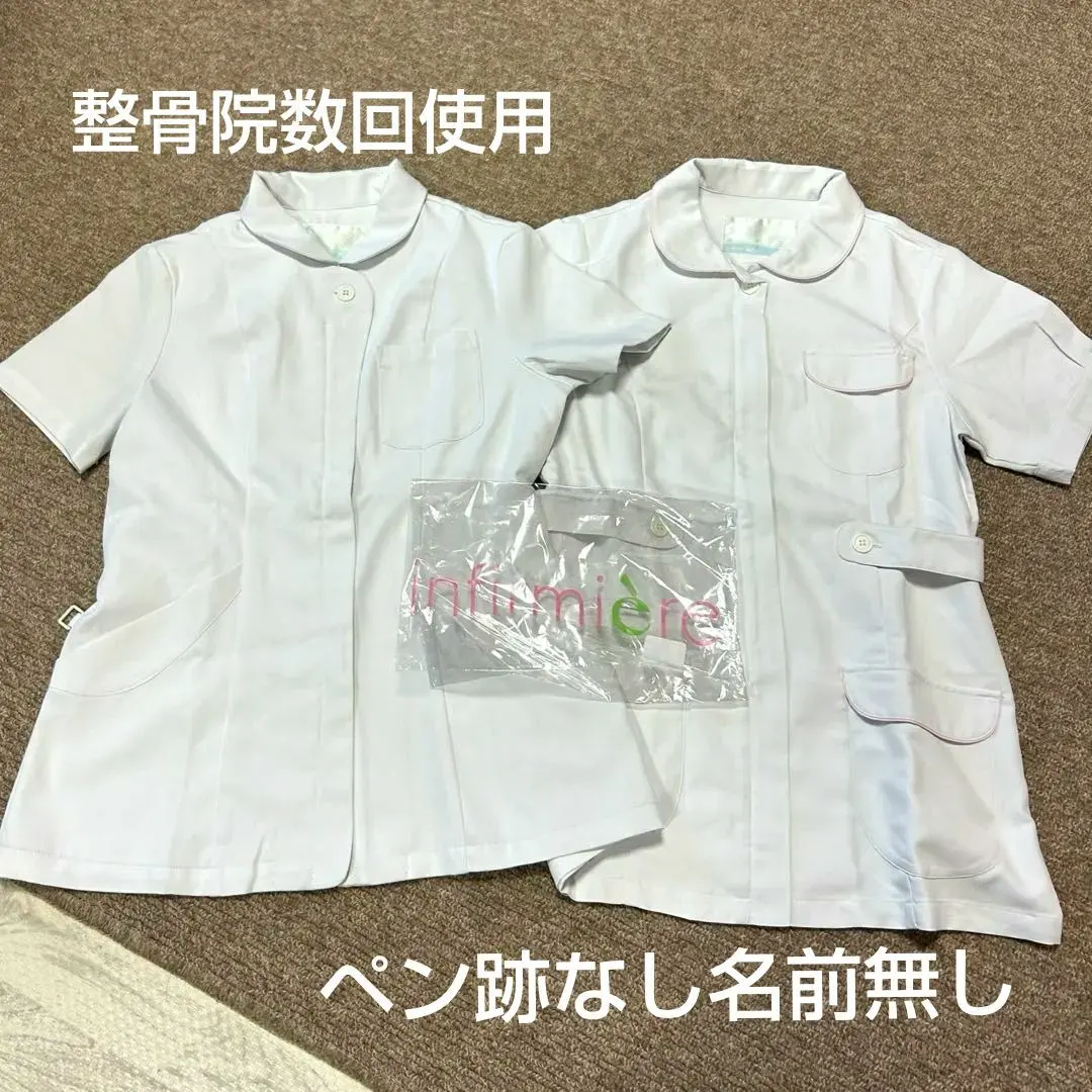 白衣 2枚セット 丸襟 ポケット付き 施術服 ナース服 白 L
