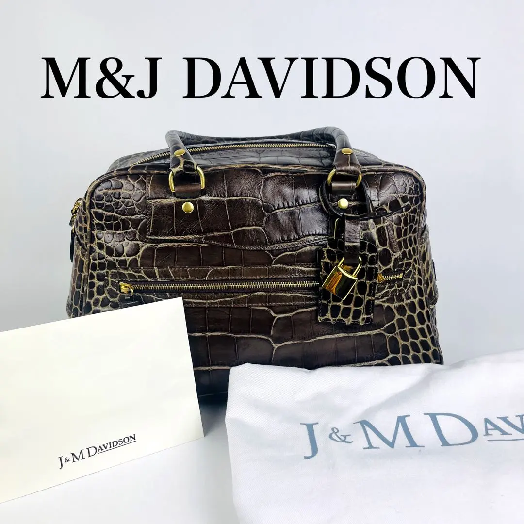 J&M Davidson クロコ型押し レザー ミニボストンバッグ 訳あり