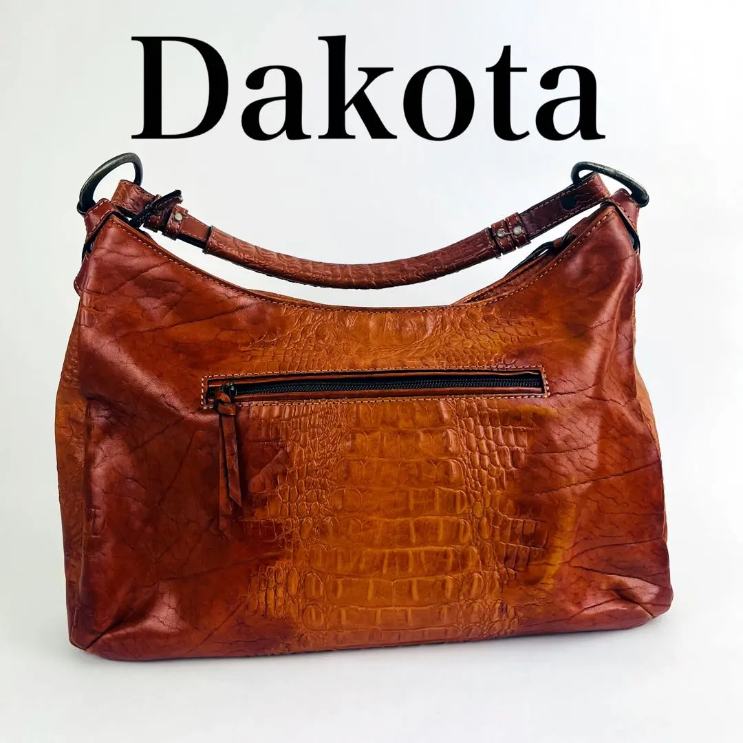 Dakota クロコダイル風ブラウンレザーショルダーバッグ ホーボー ダコタ