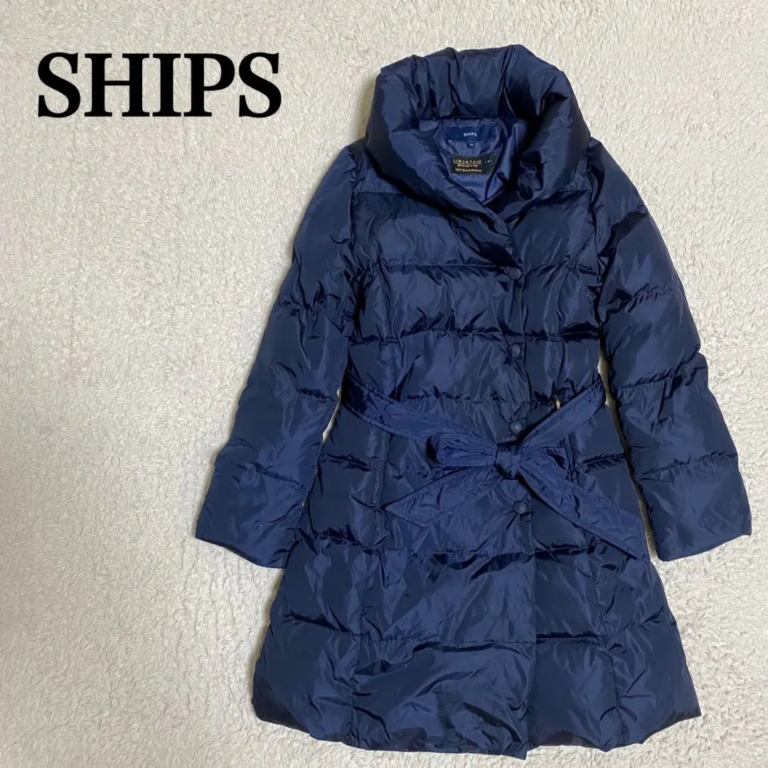 美品✨SHIPS LIMONTA ダウンコート ネイビー リボン付き