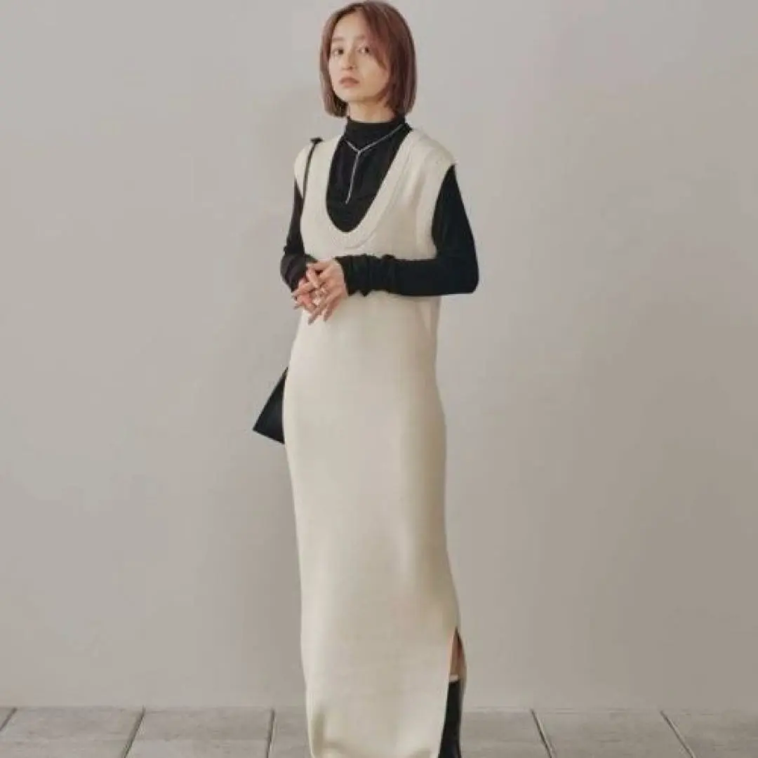 TODAYFUL Uneck Knit Dress ユーネックニットワンピース