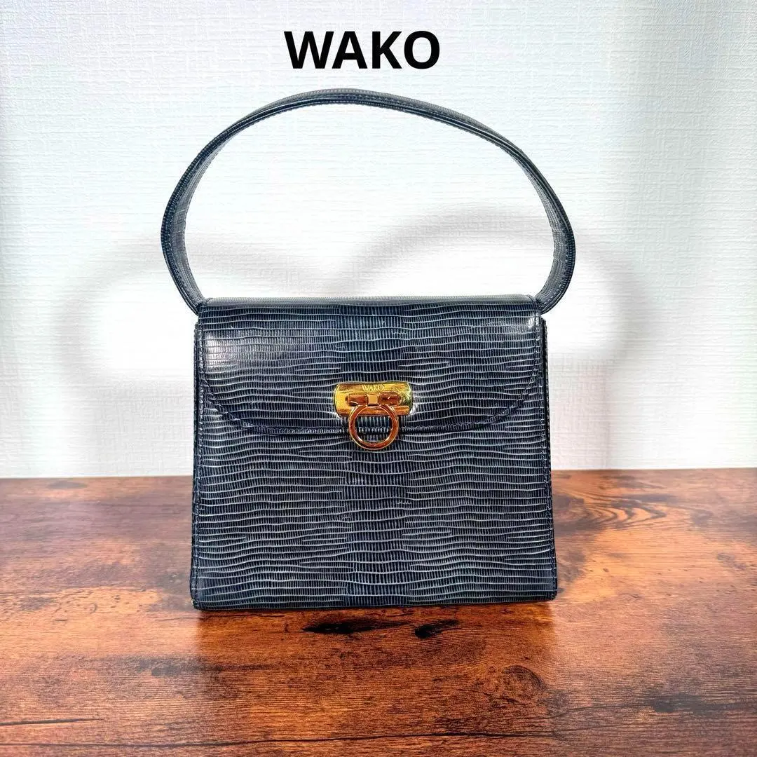 銀座 WAKO 和光 リザード 蜥蜴 ハンドバッグ お受験 卒業式 底鋲 黒