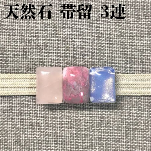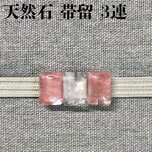 【帯留】ローズクォーツ ストロベリークォーツ オパライト ピンク クリア 透明 スクエア 3連 No.854