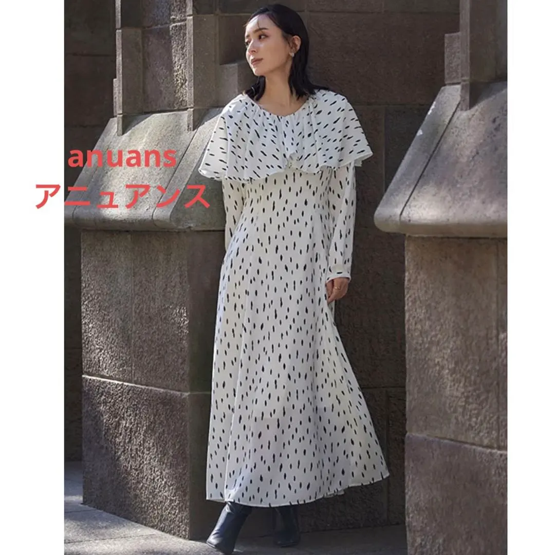 anuans アニュアンス ランダムドロップパターンワンピース ホワイト 白