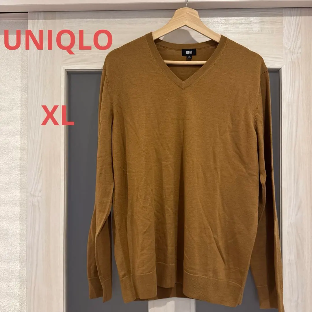 UNIQLOユニクロ メンズ メリノVネックセーター キャメル XL