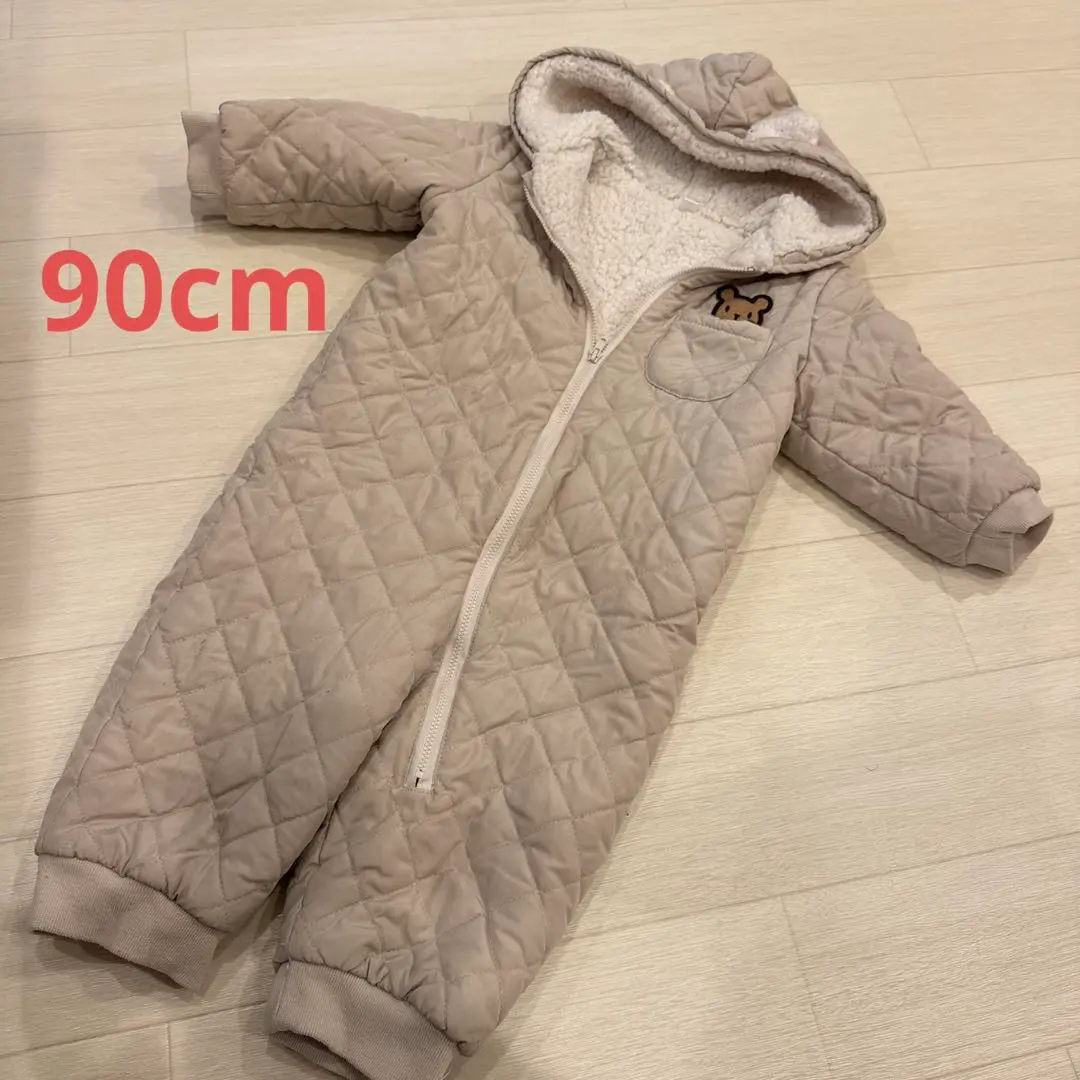 防寒ジャンプスーツ 90cm ベージュ くま ロンパース オールインワン 冬