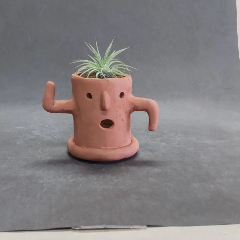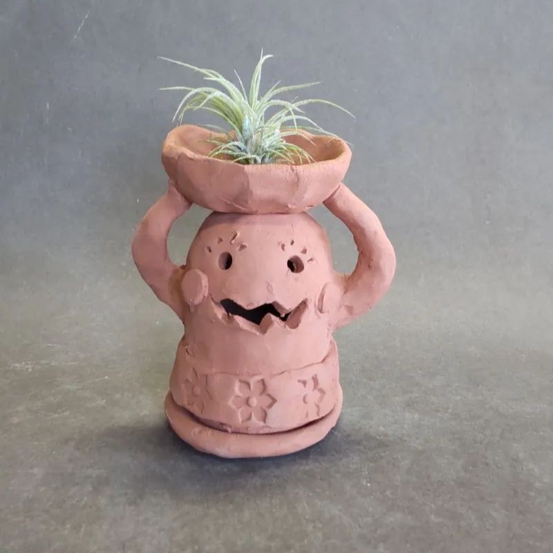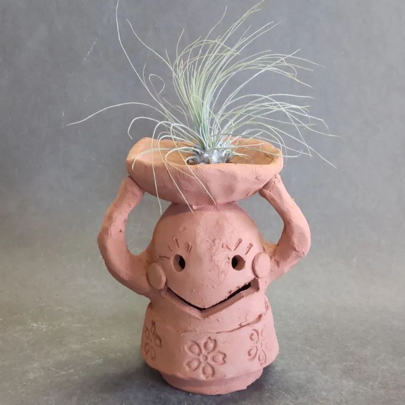 【オリジナル手作り】陶土製 人形型 植木鉢 エアプランツに最適