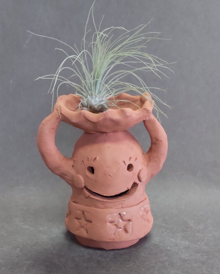 【オリジナル手作り】テラコッタ製の笑顔のキャラクター鉢、エアプランツに最適 はにわ風