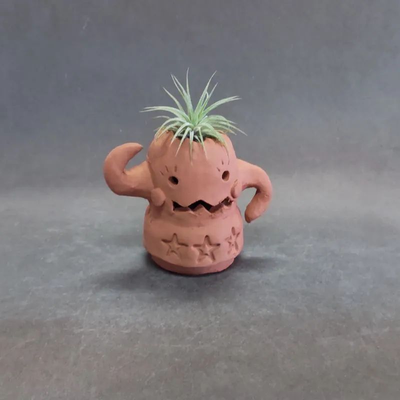 【オリジナル手作り】テラコッタ製キャラクター鉢、エアプランツに最適 はにわ風