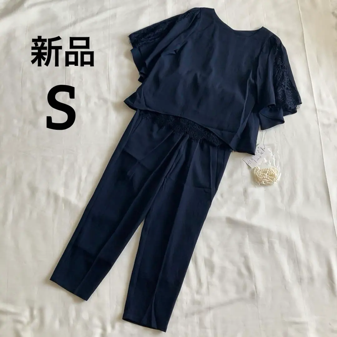 新品 定価15800円 パンツ セットアップ ネイビー S レース 結婚式 秋