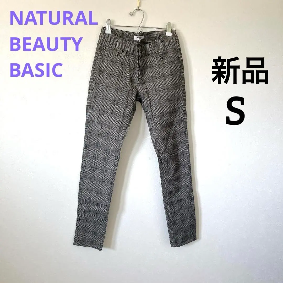 新品 タグ付き チェック パンツ S ナチュラルビューティーベーシック グレー