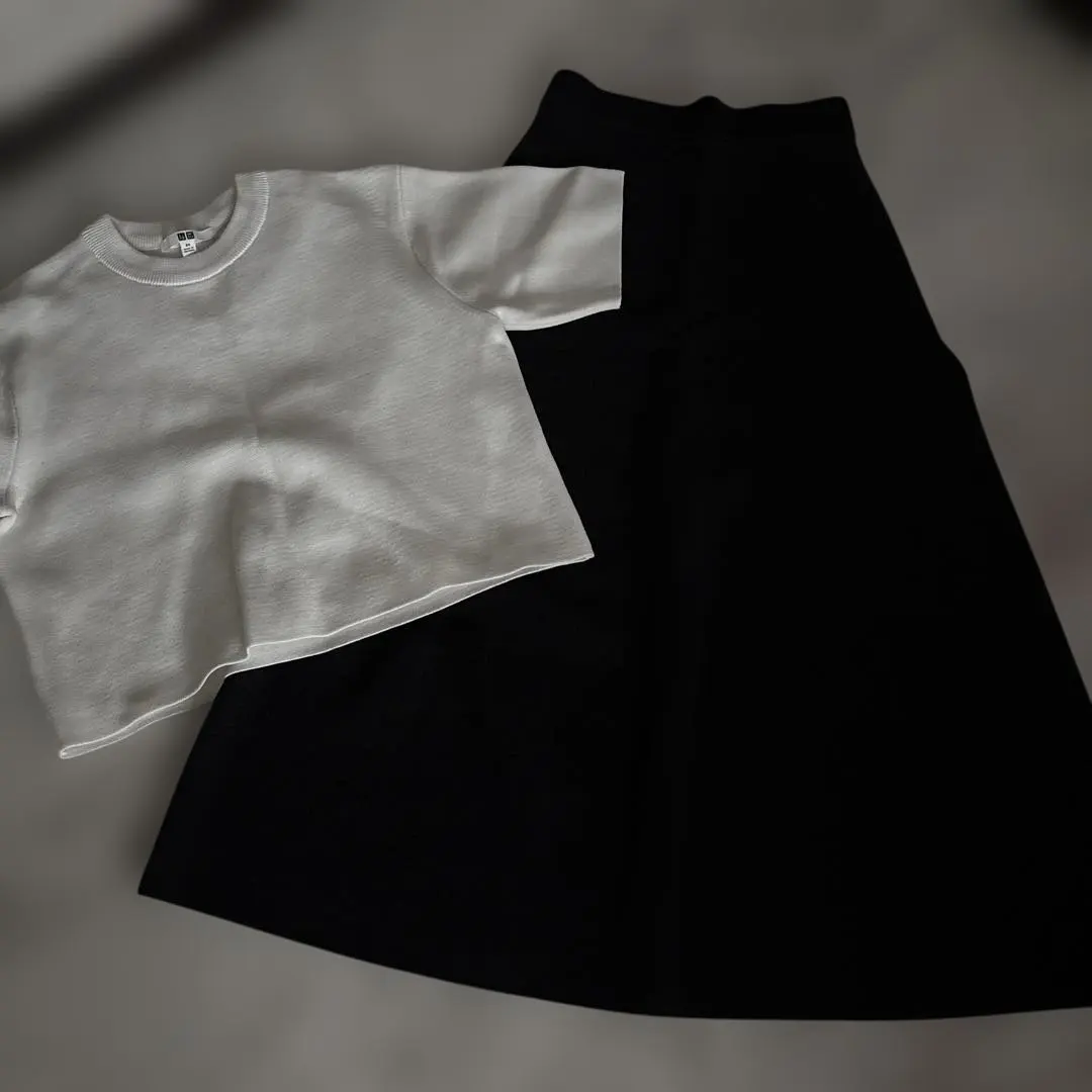 UNIQLO ウォッシャブルミラノリブセーター&フレアスカートセットアップ