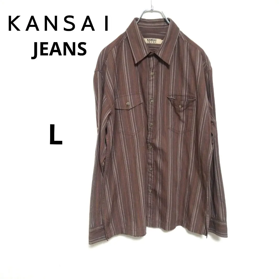 カンサイジーンズKANSAI JEANS ストライプ長袖シャツ L綿100%