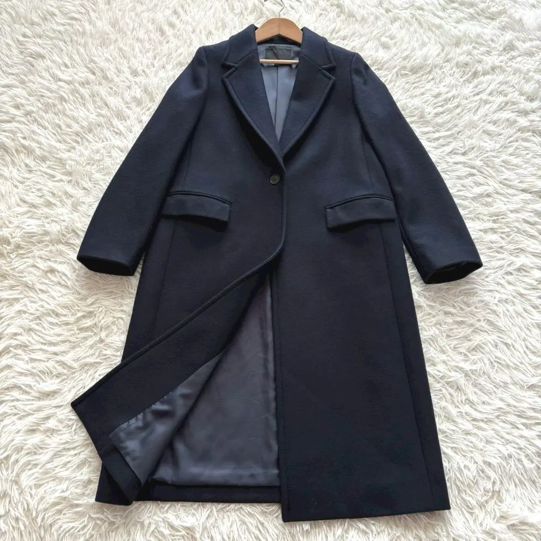 iCB チェスターコートロング丈 ウール M 黒 Shell Melton