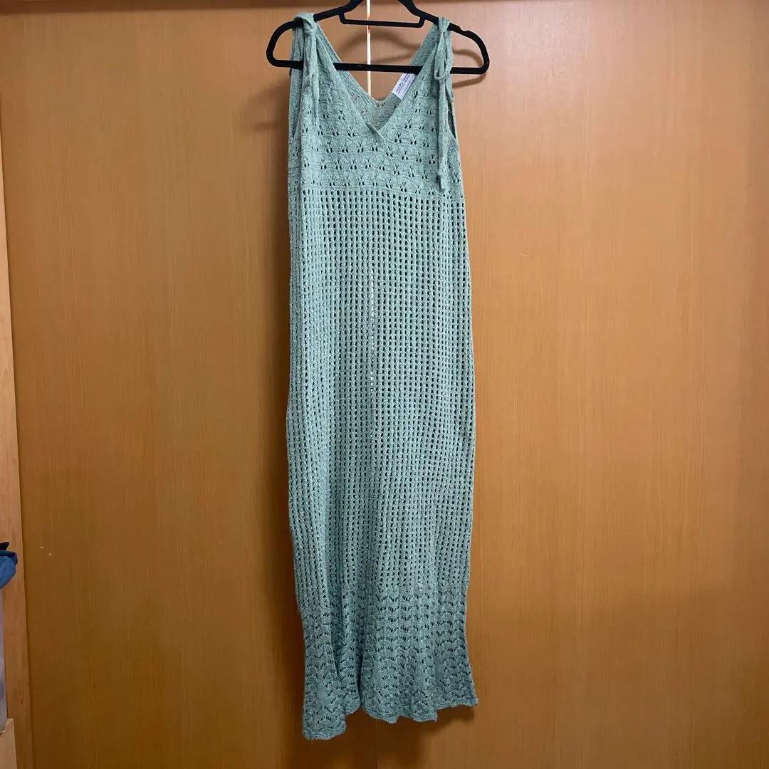 グリーン透かし編みロングワンピース