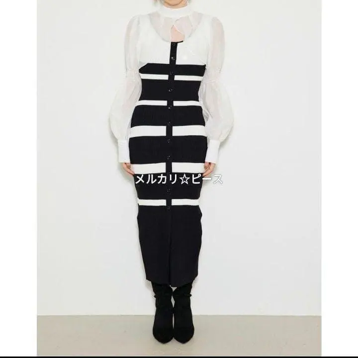 新品タグ付き リエンダ ボレロセットレイヤードニットワンピース ボーダー M