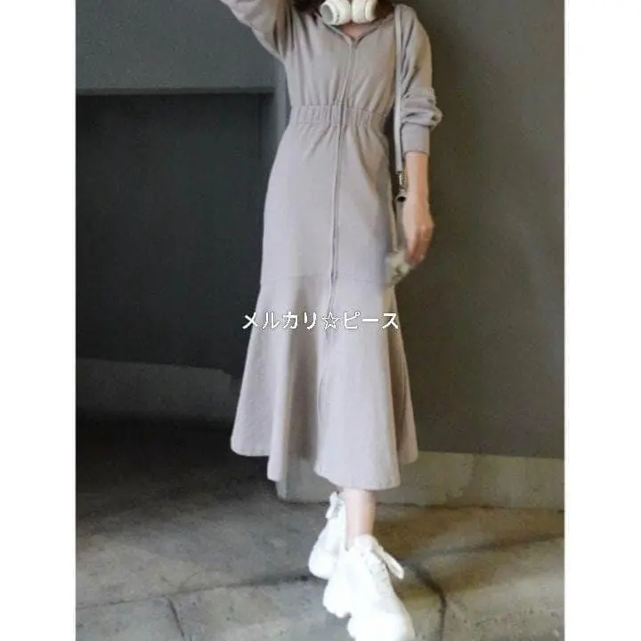 rienda クロップドレイヤードマーメイドワンピース グレー 秋冬 S 上品