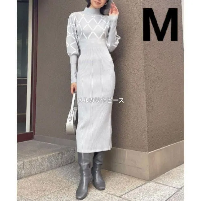 リエンダ ダイヤジャガードタイトニットワンピース グレー M