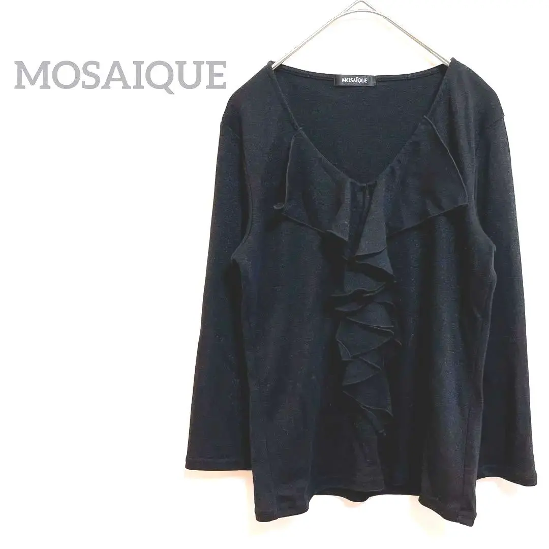 【モザイク】長袖ブラックトップスニット フリル付き 東京スタイル Mサイズ