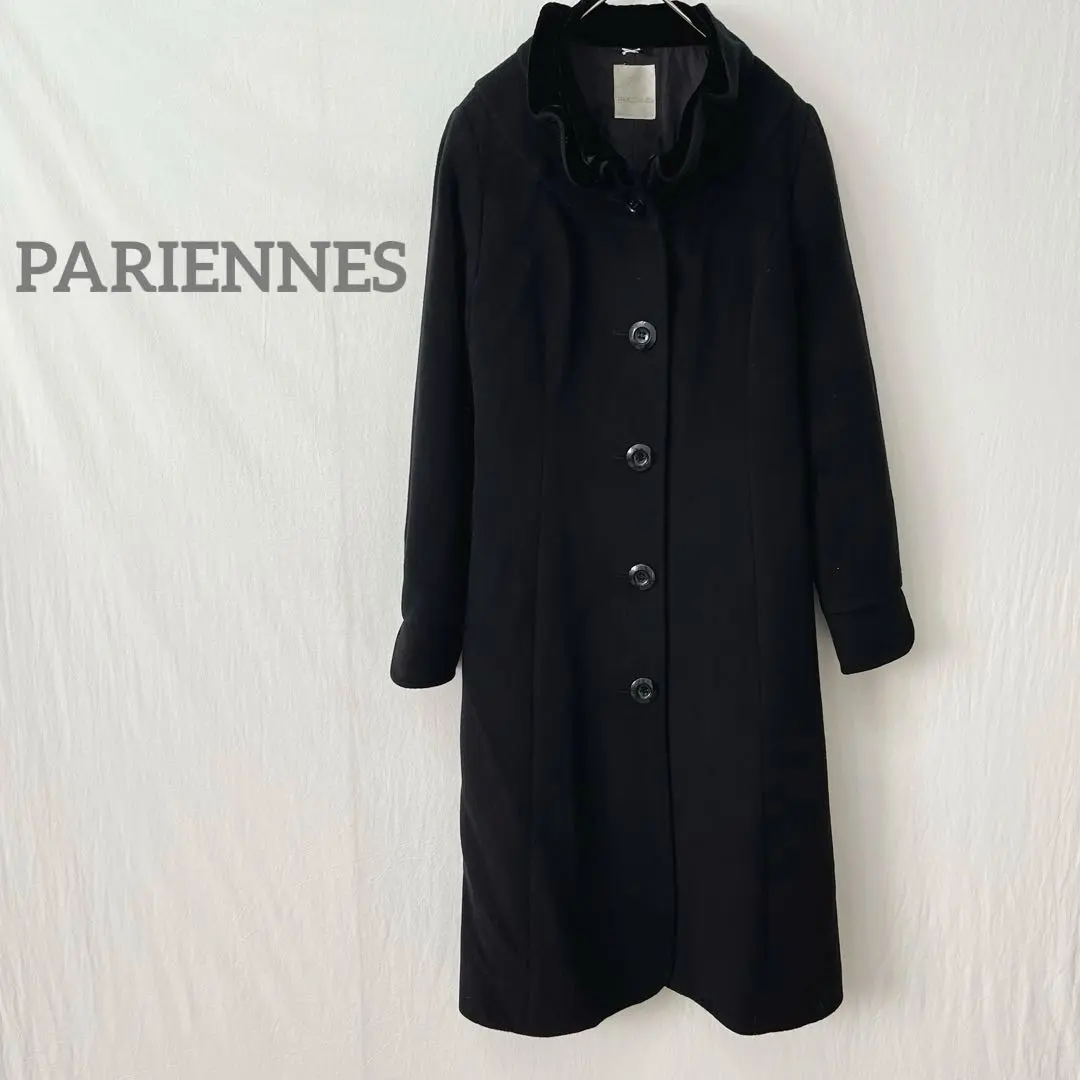 【パリエンヌ】ブラックロングコート レディース Mサイズ相当 冬服