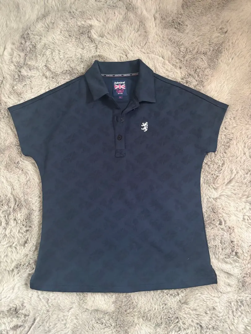 Admiral ネイビー ポロシャツ Mサイズ ゴルフ レディース 総柄 ウェア