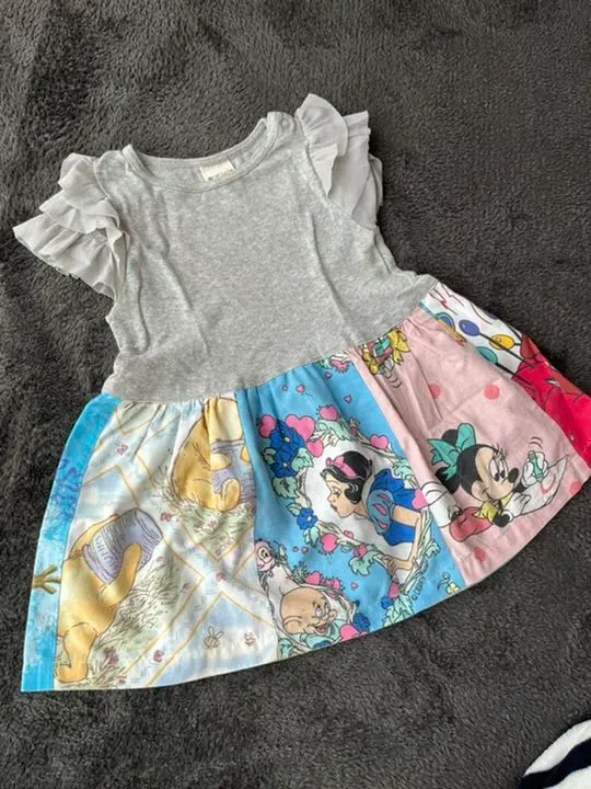 ビンテージシーツ リメイク ワンピース 女の子 ディズニー 90 赤ちゃん 半袖