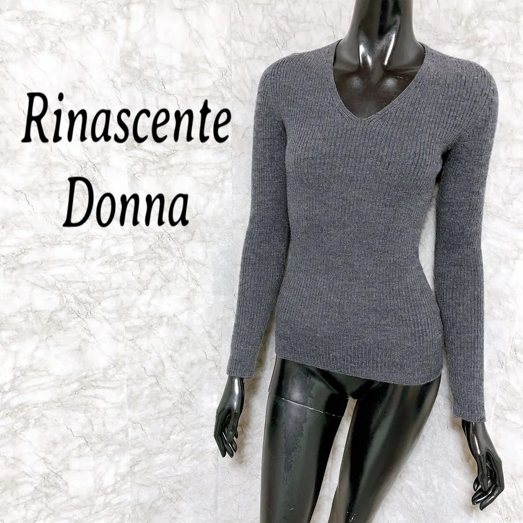 Rinascente Donna 長袖 リブニット グレー ウール100 日本製