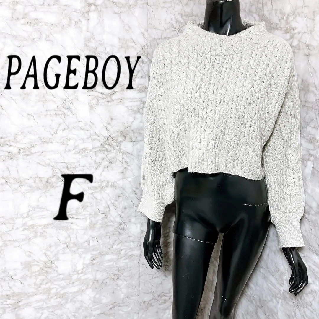 [PAGEBOY] 長袖 ケーブルニット ショート丈 カジュアル オフホワイト