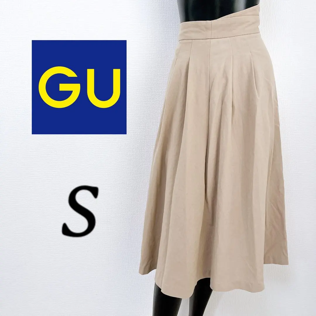 [GU] ジーユー ミモレ丈 フレアスカート キレカジ ベージュ (S)