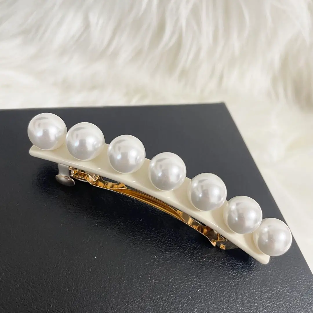【新品未使用】パール付きヘアバレッタ 白 9cm 韓国 ヘアクリップ ホワイト