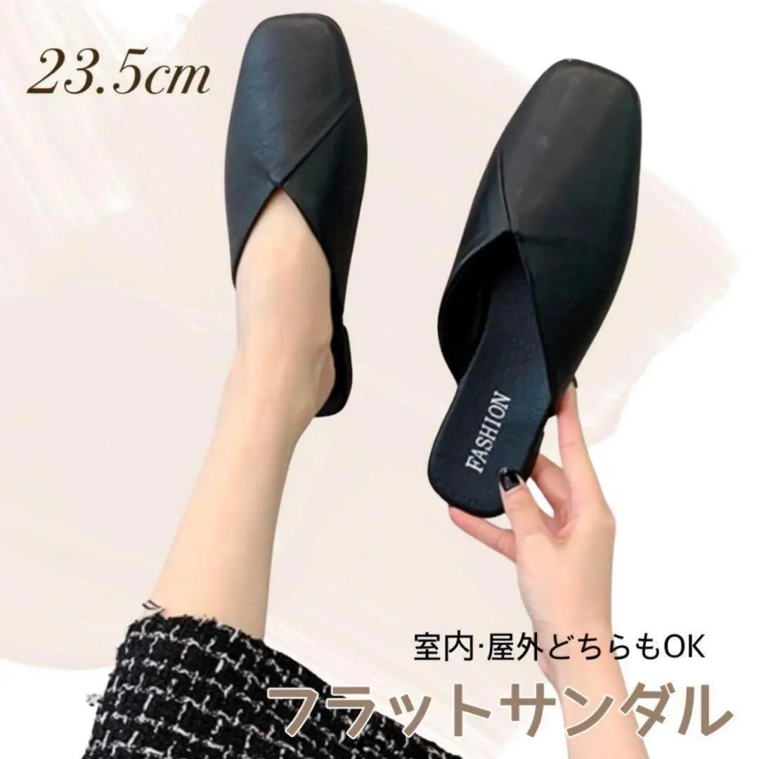 フラットサンダル 室内外兼用 24.5 ブラック スクエアトゥ シンプル 韓国風