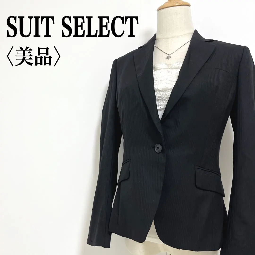 美品【スーツセレクト】シャドーストライプ柄ウール100%スリムフィットジャケット