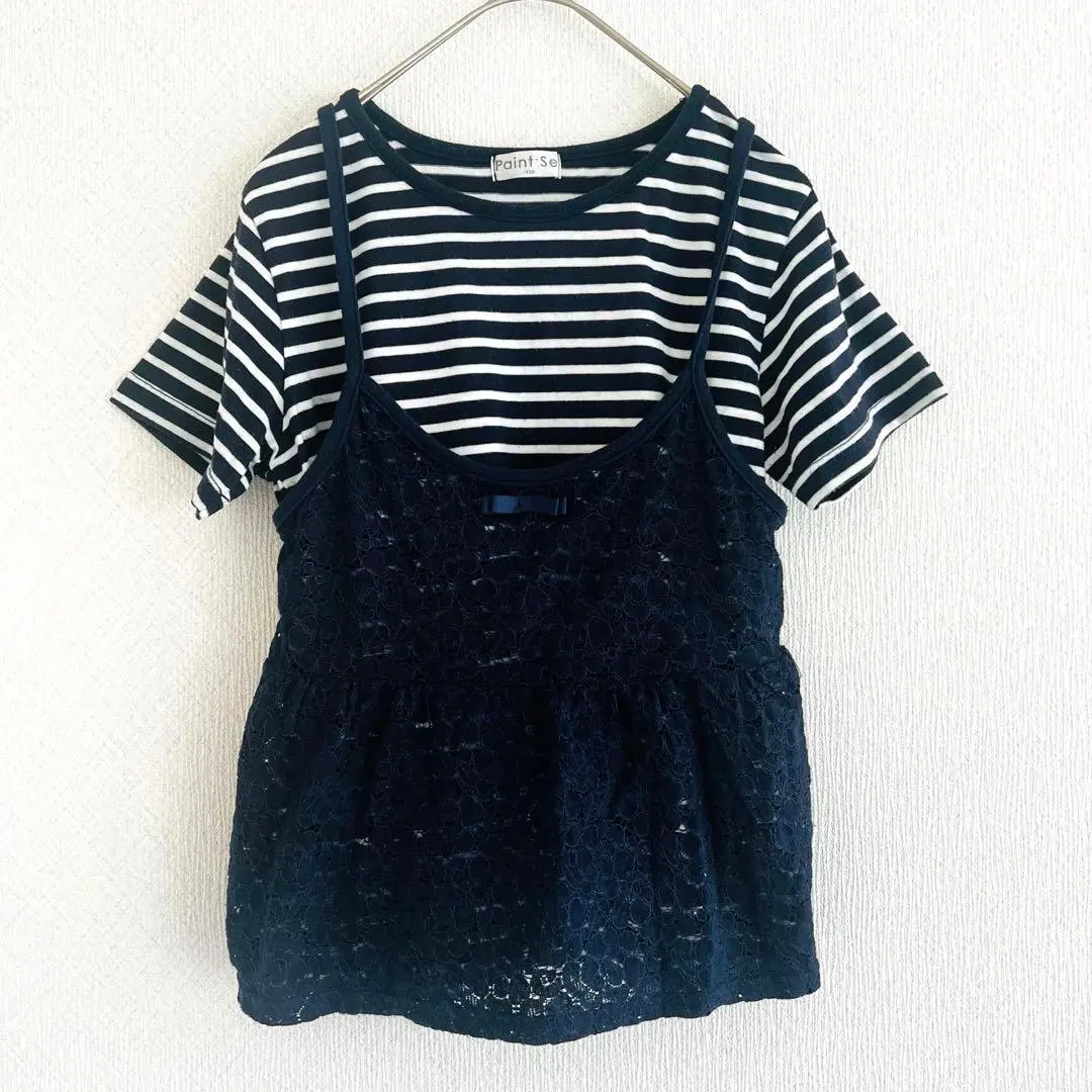 【paintset】150㎝ 2way 半袖Tシャツ レースキャミ 綿 ボーダー