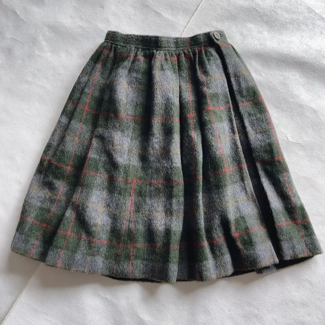 オックスフォードクインシー チェック柄 ウールフレアスカート 厚手 上品 暖か